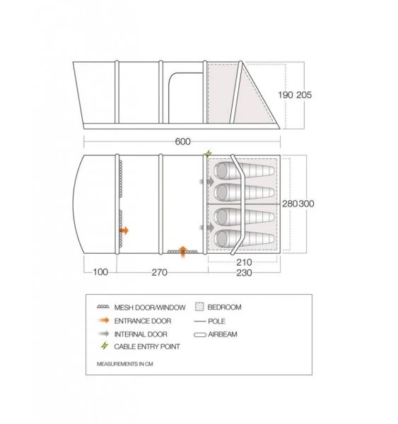 The Aether Air has a varied number of features such as a Pre attached Open Extension to give the user shelter from the wind, not to mention Dark ‘Nightfall Bedrooms’ to stop you waking up when the sun does, two mesh doors leading out of the living area which helps to keep insects out. Vango’s Villa Construction beams not only make it easy to inflate but roomy as the upright side wall increase height and allows furniture to be moved closer to the edge of the tent. Crystal Clear windows allow plenty of light into the tent while toggle up curtains give privacy as and when needed.