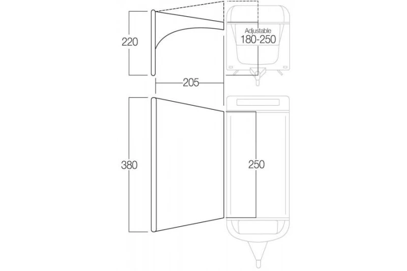 The perfect Sun Canopy for any vehicle, whether you have a Campervan, Caravan or a Motorhome, the Airbeam Sun Canopy offers a bit of extra shelter while being incredibly quick to put up. Vango’s Airbeam system provides a strong yet durable structure to help battle the sun and rain. The new 2.5m size makes it perfect to fit onto small VW Campervans and there are now optional sides we can now help to enclose the canopy a little more.