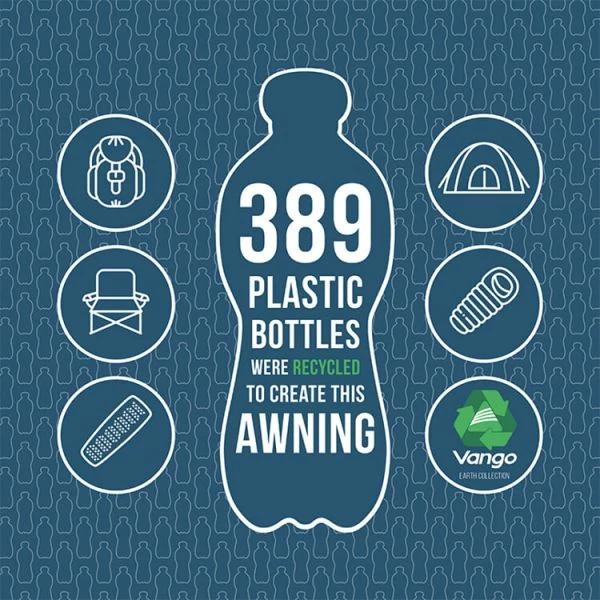 The Vango Galli name has been around for many years and for the latest season Vango have almost redesigned the driveaway awning and made it a bit more up to date. The Galli Pro not only has a new look but has become more Eco friendly thanks to the material made from recycled plastic bottles. 373 bottles have been transformed into a strong material which has a 420-denier double ripstop weave running throughout the fabric, thus making it a quality awning with premium features. The new darker colour smartens up the Galli while the larger PVC windows still allow plenty of light to flood in. Two tone guylines highlight the trip hazards but don’t clash too much with the colour scheme of the awning, and the storm straps at the front & back of the Galli help to ensure stability.