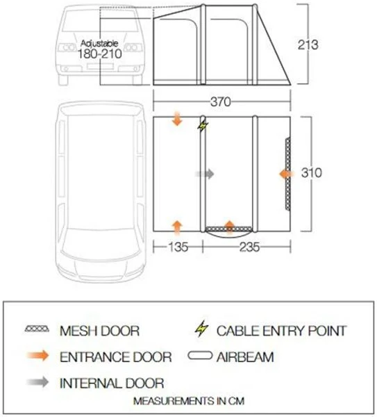 - Inflatable AirBeam® Structure – With 10 years’ experience in AirBeam® technology, we are the leaders in pole free pitching. AirBeam® technology ensures your awning is erect within a matter of minutes (supplied with AirBeam® pump)