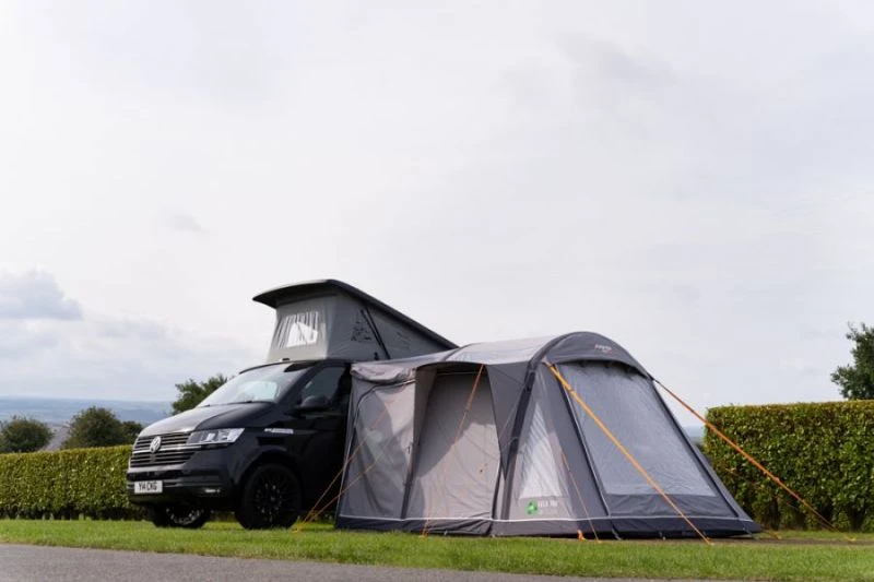 There are multiple ways of attaching the awning onto your vehicle, this means regardless of whether you have a pop-top roof or a wind-out awning it will fit and look as it does in the brochure. The attachment also has two handy side doors to allow you to enter the vehicle without going through the awning every time, plus it means you can access the tailgate without having to walk around the Vango Kela.