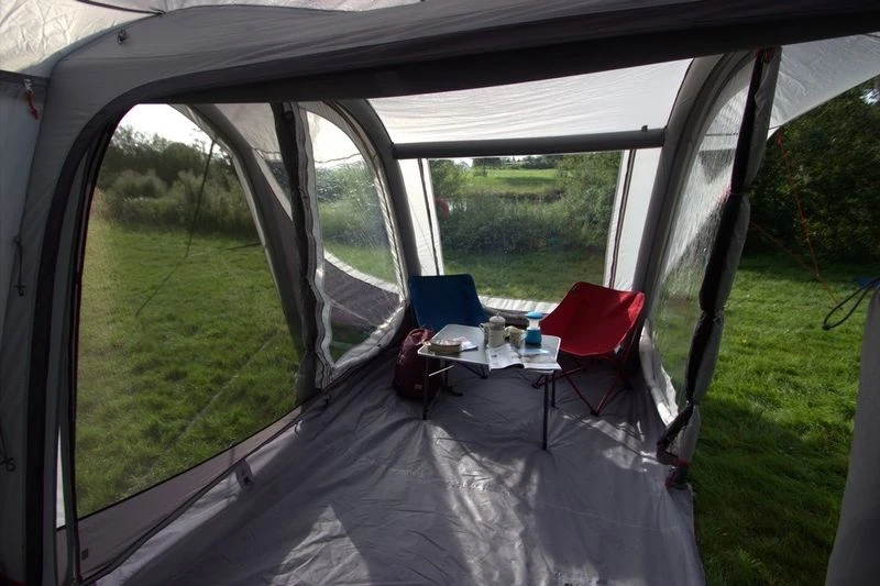 The Magra awning is designed for campervans and conversions. This inflatable drive away awning has a front and back entrance, so is ideal for left or right main van doors, allowing you to create the perfect set up on any campsite. With an eyebrow canopy at the front door, you can stay dry even if it’s raining whilst a sweeping canopy at the rear is ideal for muddy boots or creating a social space at the back of your campervan. The Sentinel Sport Fabric has a small and lightweight pack size whilst still being durable. With a great size to weight ratio, the Magra air awning ensures you can spend the day walking, biking, surfing or just relaxing on the campsite and still have room in your campervan for every adventure.